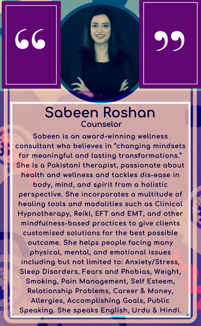 Sabeen is the founder of SABBEEN ROSHAN – a global leader in mindset shift, transformation, and conscious leadership development. As a wellness consultant she aims at reshaping the future of work and employee experience. To her changing lives means changing mindsets to bring about meaningful transformations – be it individuals or corporates. It is her passion to empower people to live their best lives.